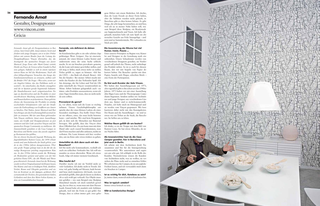 Barcelona stands for inovative and state of the art design being the domicile of renowned and celebrated names in this sphere of creativity. Who is the accomplishing force behind this development? Who are these persons? What is their vision of good design and how does it echo in the interior of their private homes? We were about to explore their life- and working spaces and encounter their ideas and reflections on the city they live in.